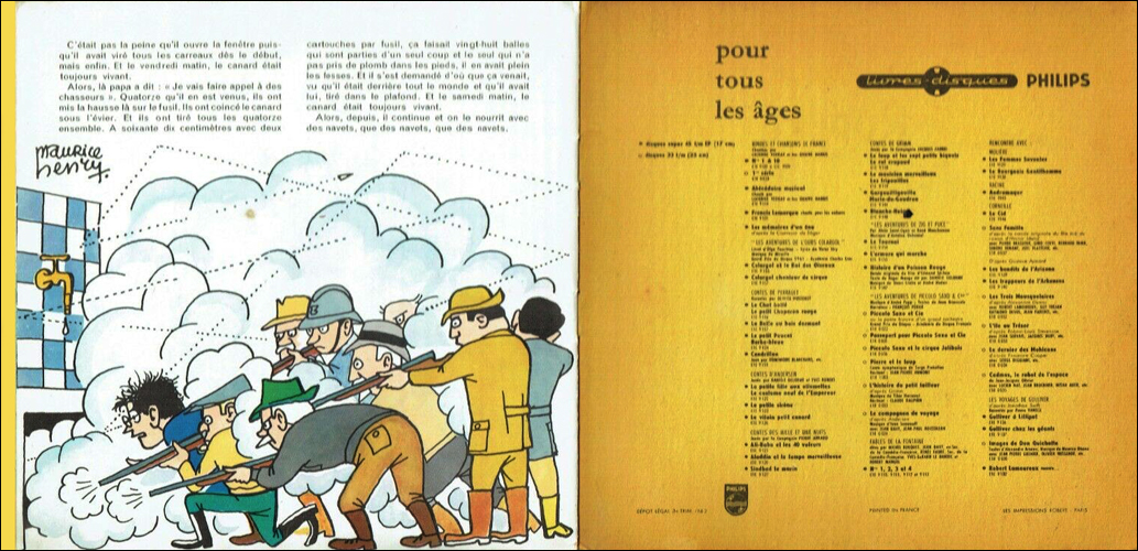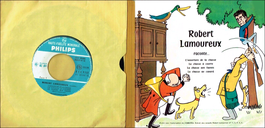 (L'Ouverture de la chasse, La Chasse à courre, La Chasse aux fauves, La Chasse au canard), 45 t, livre-disque Philips E 1 E 9132, 1958, 1959 et 4e trim. 1960