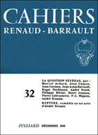 • La Question Feydeau, Julliard, Cahiers Renaud-Barrault, saison 1960-1961, décembre 1960